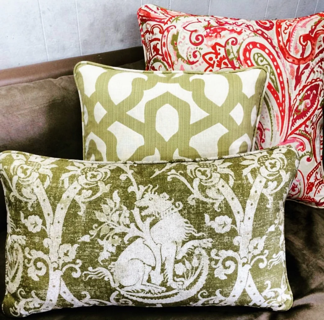 Free-hand Custom Fabric Quilting . Feather & Down inserts . Sumbrella Outdoor Fabrics